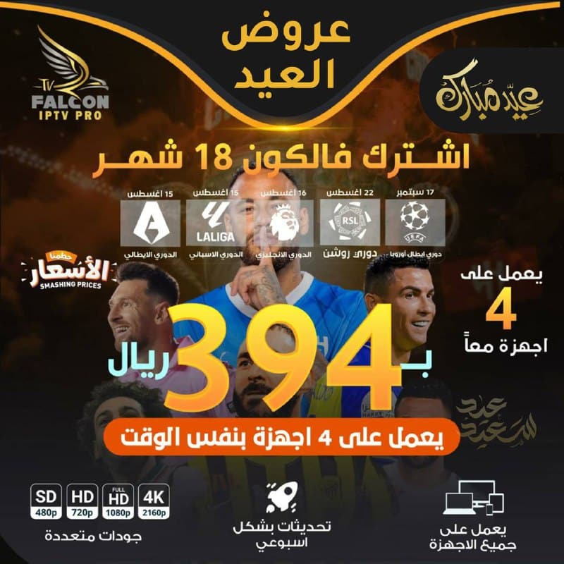 اشتراك فالكون falcon iptv استمتع بالاشتراك الافضل من الموقع الرسمي وبالعروض الحصرية لن تجدها في موقع اخر