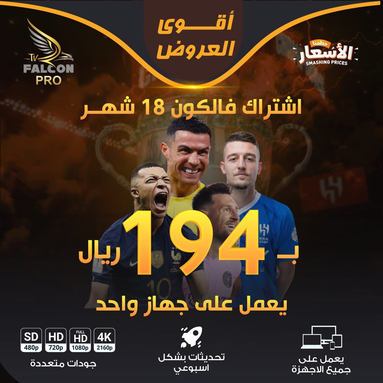 اشتراك فالكون iptv pro استمتع بالاشتراك الافضل من الموقع الرسمي وبالعروض الحصرية لن تجدها في موقع اخر